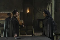 Valya gasps and tells Tula she saw what they did to Desmond. She couldn't make out a face, but they're using a thinking machine. They put one inside him. His eye is the virus and he is their weapon. She picks up a knife, but Tula uses The Voice to order her to stop. Then she tells Valya that Desmond is her son. She's given Valya everything, but she couldn't give Valya her baby. Valya realized Tula lied to her all this time. Tula says it was for his protection. Valya asks if Tula thinks she's a monster. Tula says all the carnage and deception was on her orders. But Tula could have broken Valya's hold on the Sisterhood at any time. She didn't because they're the same. They're two wolves, born to feed with no care for the cost. If her son had the potential Anirul promised, he deserved better than them. Valya says Tula has handed him to their enemies and there's a hidden hand grasping for control. They weren't the only ones to realize his potential. Whoever is behind this saw it and harnessed it. She wants Tula to let her end this now. Tula says Desmond is their victim. She begs Valya to let her save him. She can resolve the threat if Valya trusts her. Valya says she's not afraid anymore. The reckoning is upon them, stalking them from the darkness. If they want to fight in the shadows, she'll go to the shadows. She hands Tula a knife and says the decision is hers. She walks away, leaving Desmond and Tula alone. Tula goes to hold him, but he hits her hand away. He stands and allows her to hug him. She runs her finger over his eyebrow and remembers doing the same when was a newborn. When she pulls away, he tells the guards to arrest her.