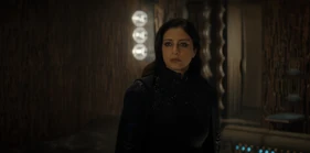 Valya tells Keiran they can land in the fuel depot. Once they've landed, she leads them to a passage to the next terminal to avoid any checkpoints being set up. They watch the guards lands as Keiran asks if her contacts can get them off the planet. She says they can. They just need to get to his station, where he has access to a courier ship. He can smuggle them onto the heighliner. She points Ynez and Keiran in the right direction. She's going to slow the guards down and says she'll follow when she can. She trusts Keiran to get Ynez to safety. Desmond orders the guards to spread out. Valya uses the Voice to order the guards to stop and then to defend her. She tries to get them to kill Desmond, but they can't. She reminds him that he's seen her end and asks him to show her. He looks at her and after a few moments she collapses.